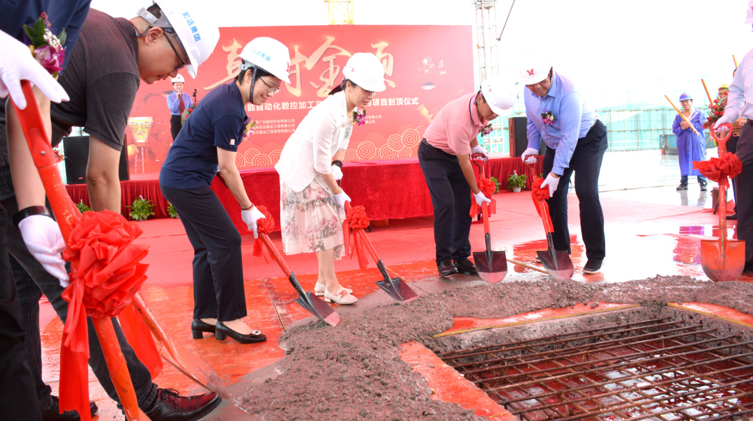 2023年5月24日上午,广合科技东莞智能自动化数控加工及电子制造服务项目(以下简称:广合项目)在望牛墩镇望临港工业园举行了隆重的封顶仪式。望牛墩镇副镇长黄文进、镇投资中心主任叶慧君、大江网页版董事长肖红星、集团总经理曾红携管理层代表和参建单位广东宏达工贸集团董事长袁斌及其领导等人共同出席见证了本次封顶仪式。